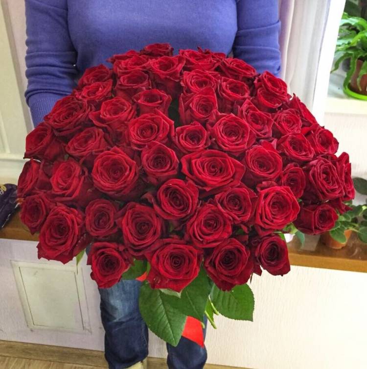 Букет, состоящий из огромного количества красных роз, не сможет оставить равнодушным. Это классика, проверенная годами, поможет растопить сердце близкого человека. Красные розы всегда означали страсть и любовь, прекрасно подходят для выражения чувств женщине или мужчине, поднимают настроение и уносят в мир романтики непередаваемым запахом.
